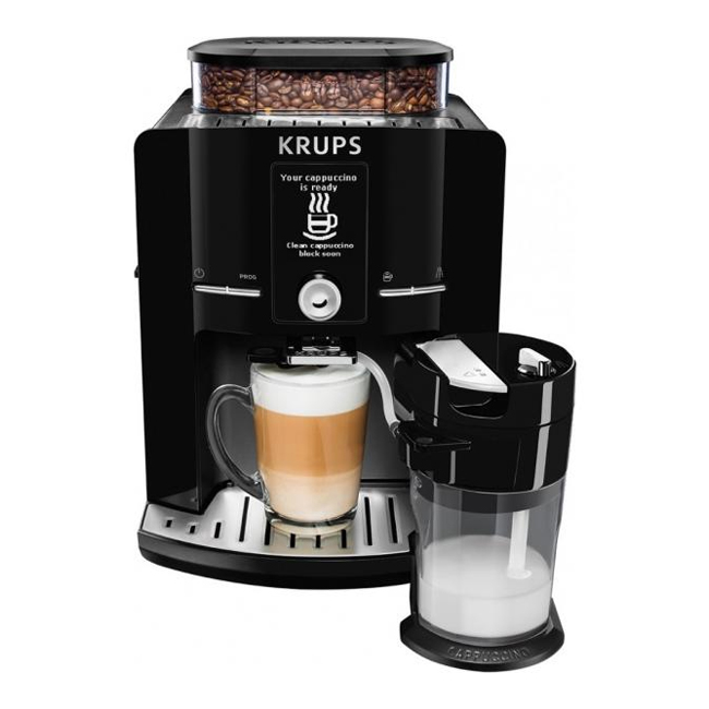 Die Schweizer Firma Krups hat sich dank Kaffeemaschinen für jeden Geschmack auf dem Markt einen Namen gemacht. Einer der Verkaufsleiter war jedoch eine Kaffeemaschine mit der Funktion Kaffee zu mahlen Krups EA8050. Die Spezialisten des Unternehmens haben ein innovatives, gleichmäßiges Wasserheizsystem entwickelt und patentieren lassen, das die gesamte Wassermenge sofort auf die erforderliche Temperatur aufheizt. Aufgrund der großen Kapazität des Wassertanks (1,8 l) können Sie die Zubereitung von zwei Getränken auf einmal beantragen, und die einstellbare Position des Spenders ermöglicht es Ihnen, einen Becher beliebiger Höhe zu verwenden. Der automatische Cappuccinator saugt Milch direkt aus der Fabrikschachtel und schlägt dank des hohen Dampfdrucks den flauschigen Schaum für feinen Kaffee. Der Behälter der Kaffeemühle befindet sich oben auf dem Gerät und besteht aus transparentem Kunststoff, mit dem Sie das Gleichgewicht der Körner einstellen können.Durch Drehen des Spezialschlüssels können Sie einen von drei Schleifstufen wählen. Der eingebaute Filter besteht aus antibakteriellem Material und reinigt Wasser von Kalk und schädlichen Verbindungen. Die niedrigere Preisleiste für einen Hausbarrister aus Krups beträgt 25690 Rubel.