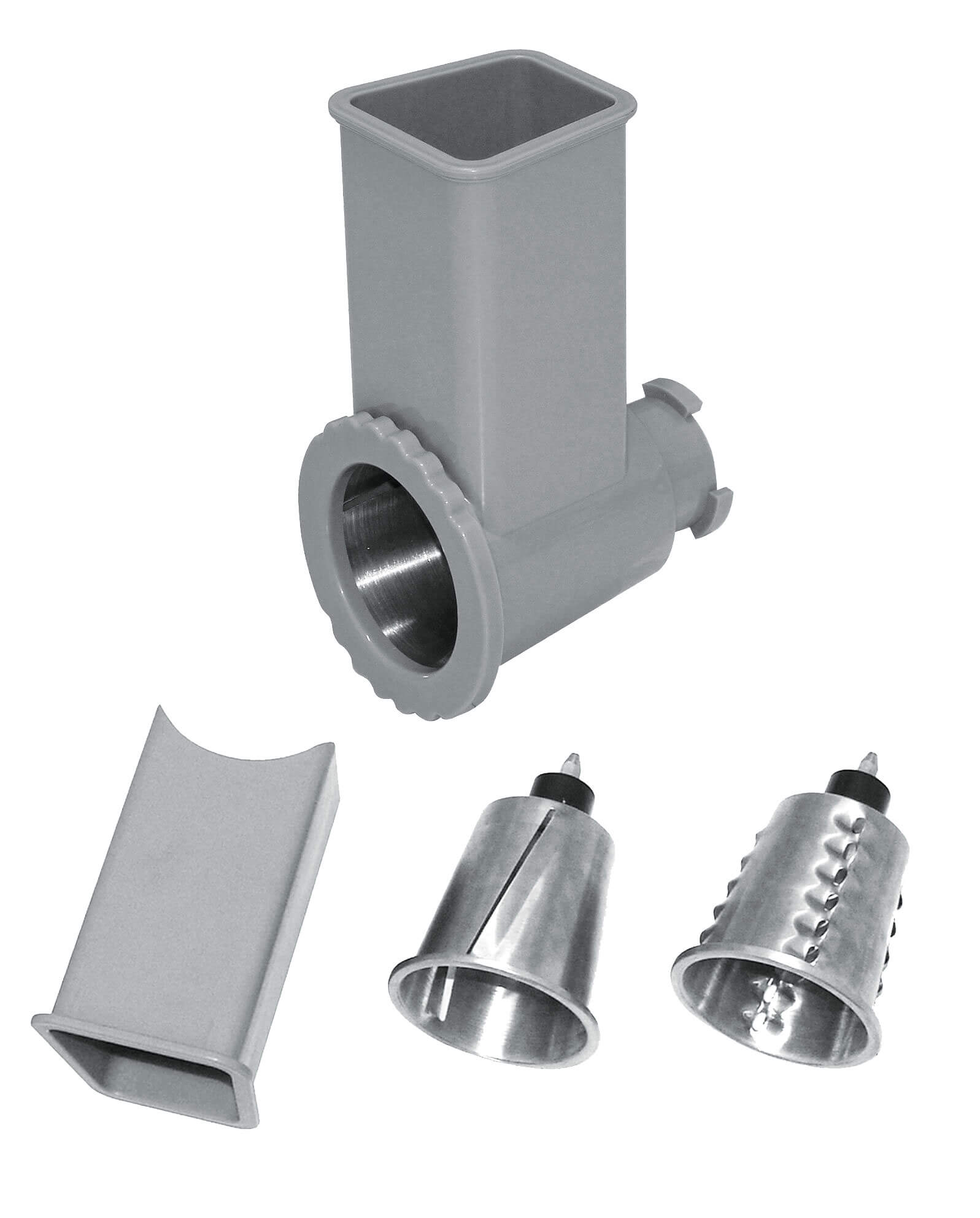Mischer GL-SMPHxxxx haben eine Leistung von 1000 bis 1500 W und einen zusätzlichen Motor am Körper, in den die Düsen eingesetzt werden. Enthalten sind drei Düsen für einen Planetenmischer und einen Düsen-Fleischwolf.
