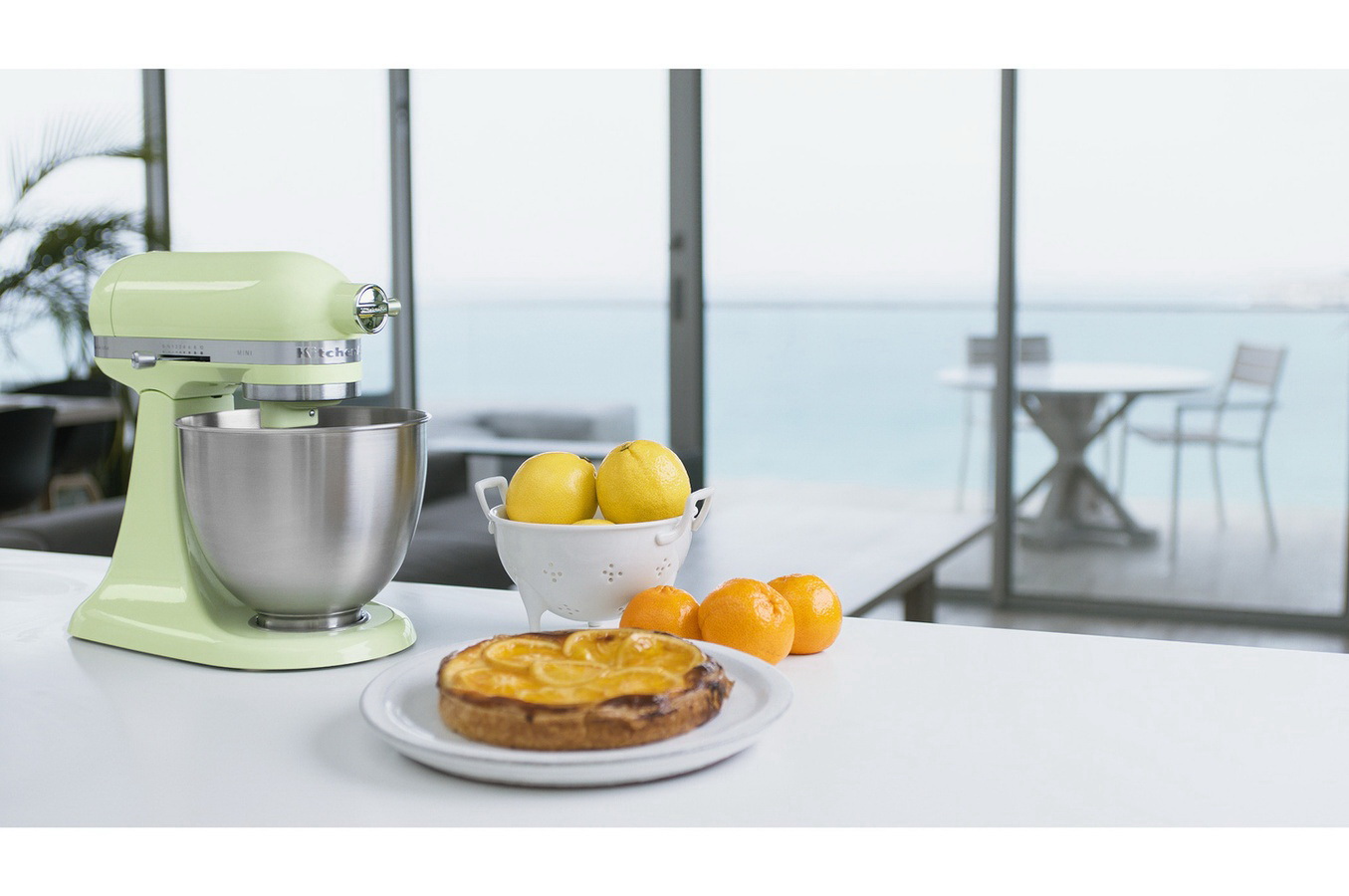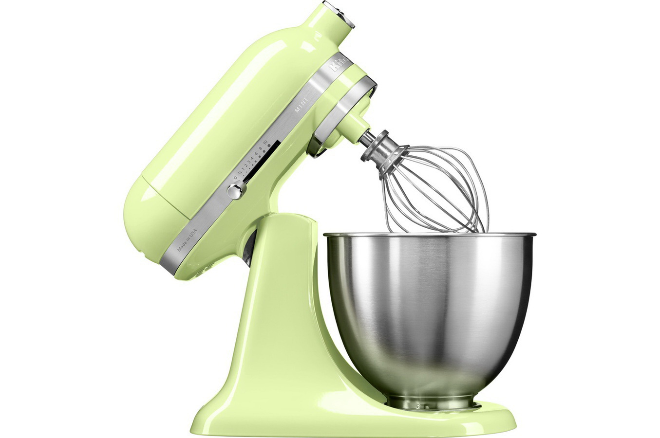 Das kleinste Modell ist der 250 Watt KitchenAid Artisan MINI. Trotz seiner Kompaktheit weist dieses Modell eine Reihe von Funktionen auf, die mit den zuvor diskutierten Modellen identisch sind. Dieser Mixer ist für den Heimgebrauch konzipiert, ist ein echter Segen für kleine Küchen. Das geringe Gewicht des nur 6,5 kg schweren Gerätes erlaubt es, es in einen Schrank zu stellen.