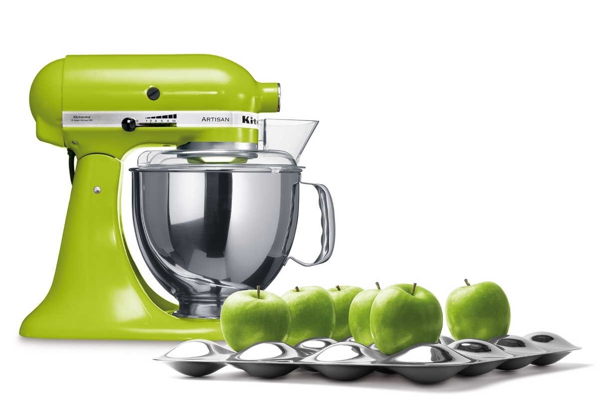 Sie können die Vielseitigkeit dieses Geräts nicht ignorieren, was durch eine zusätzliche Buchse vor dem Gerät erreicht wird, die für den Anschluss zusätzlicher Düsen ausgelegt ist. Dank dem KitchenAid-Mixer ist es möglich, Küchenarbeiten unterschiedlicher Komplexität auszuführen. Mit Hilfe zusätzlicher Düsen können Sie nicht nur hacken, reiben, sondern auch stopfen, Mehl mahlen, Brot backen, Sie können sogar einen Mixer als Entsafter verwenden. Alle zusätzlichen Düsen sind universell und für alle Mischer dieses Herstellers geeignet.