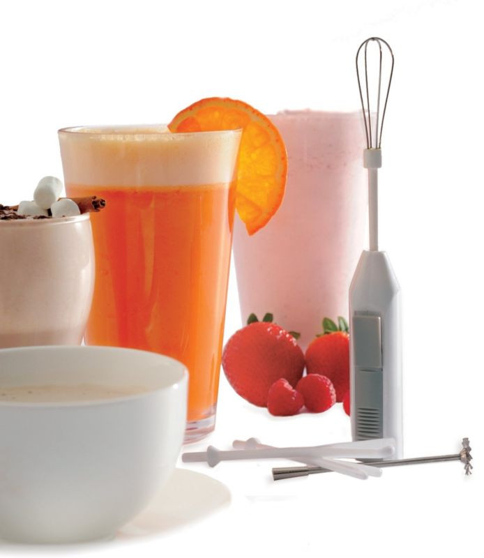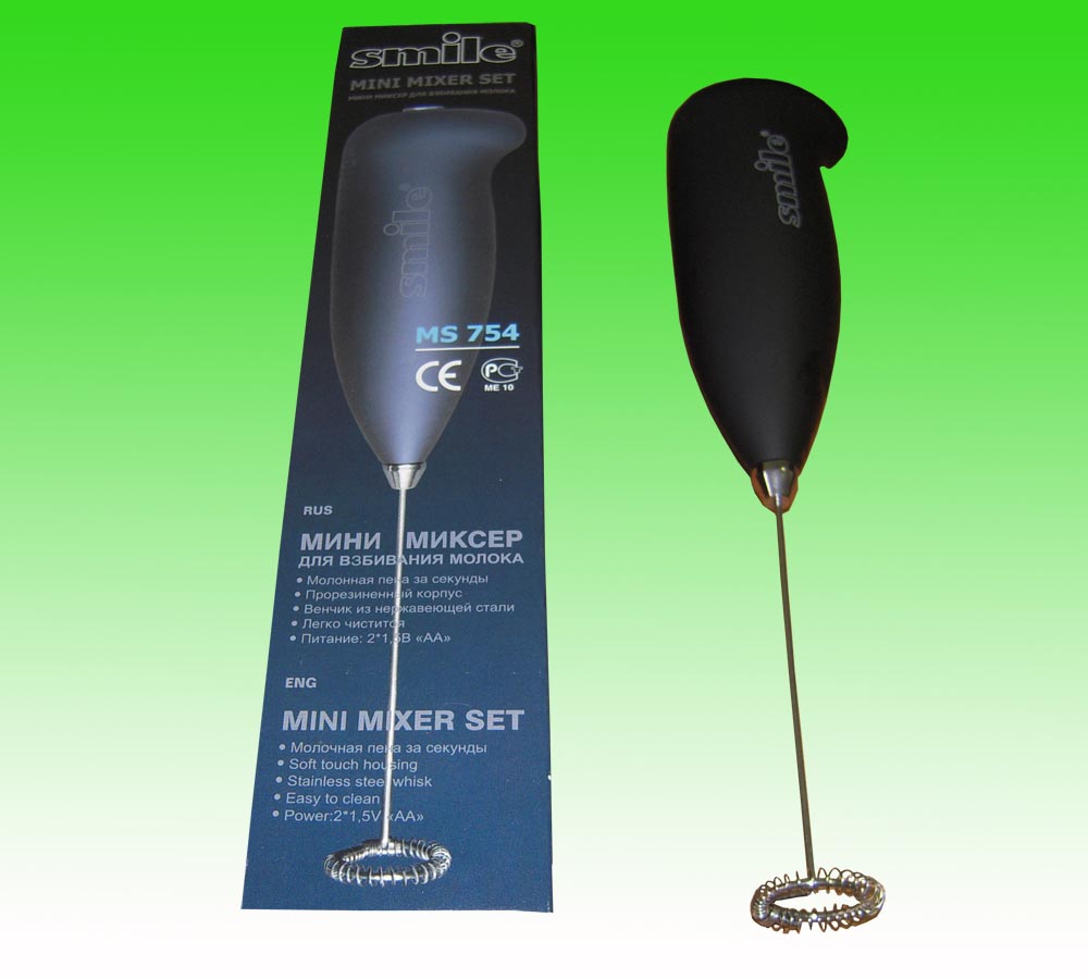 Folgende Modelle sind zum Aufschäumen von Milch geeignet: Lächeln MS 754 und Ikea. Beide Lungen, schlagen hohe Qualität. Smile hat einen bequemeren, gebogenen Griff, der nicht in den Händen rutscht, aber es kostet ein bisschen teurer. Beide Autos sind mit zwei Finger-Batterien ausgestattet.