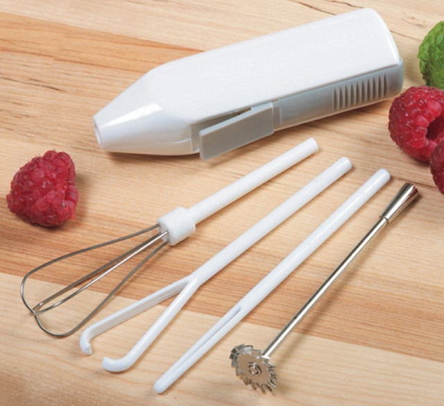 Aber nicht nur für ihn, sondern auch, um komplexere Konsistenzen wie Baiser, hausgemachte Seife und hausgemachte Cremes zu verprügeln.Ideal für diese Art von Arbeit Deluxe Cordless Mini Mixer. Sein Hauptvorteil ist, dass es vier verschiedene Düsen hat, von denen jede speziell für ein bestimmtes Geschäft hergestellt wird.