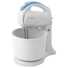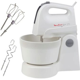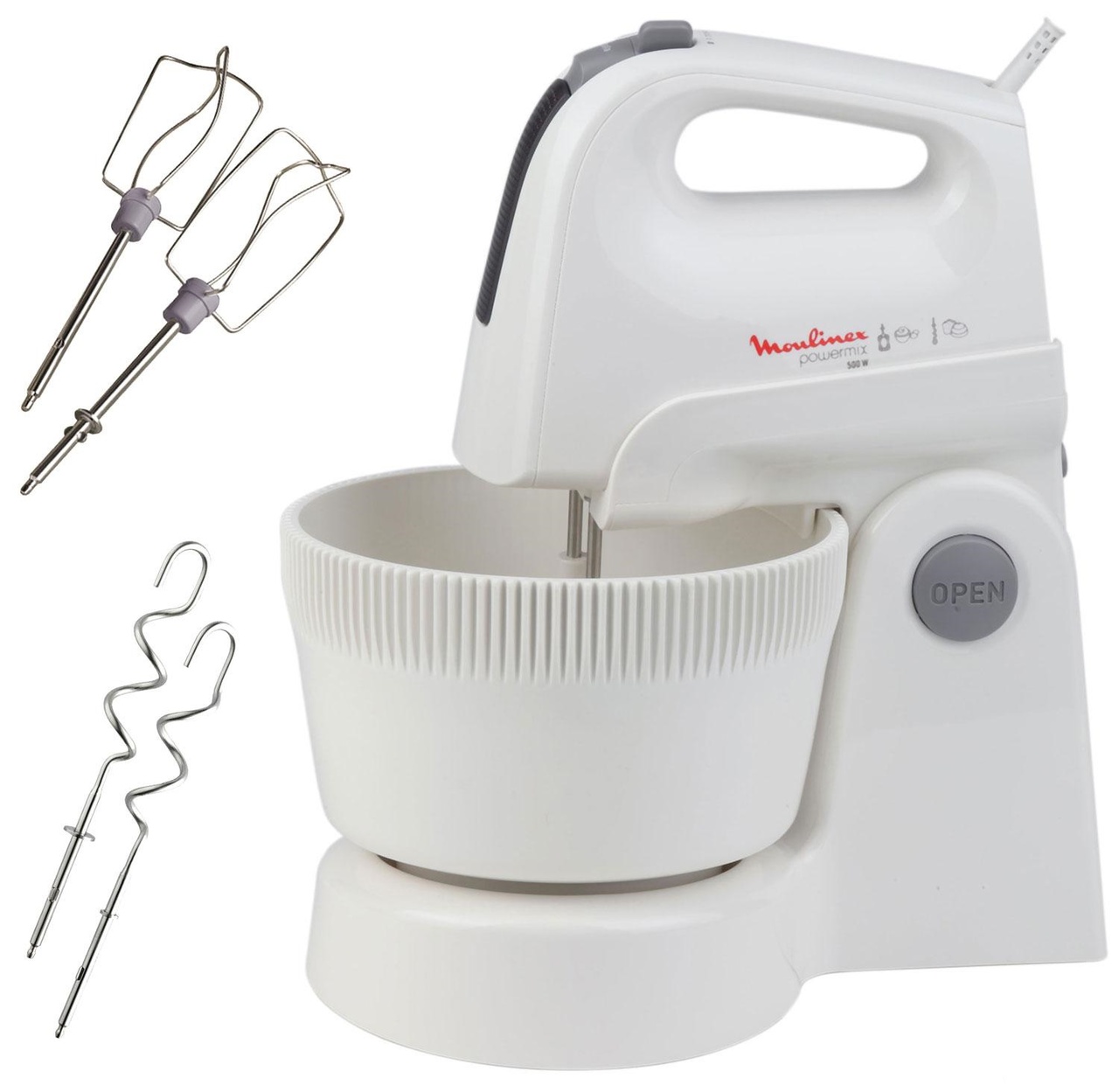 - Moulinex HM 615130 Powermix. Die Leistung des Gerätes erreicht nur 500 W, aber es reicht, den Teig zu mischen und die Eier zu schlagen. Dieses Gerätemodell ist stationär und mit einer rotierenden Schüssel ausgestattet, die die Qualität der Verarbeitungsbestandteile deutlich verbessert.