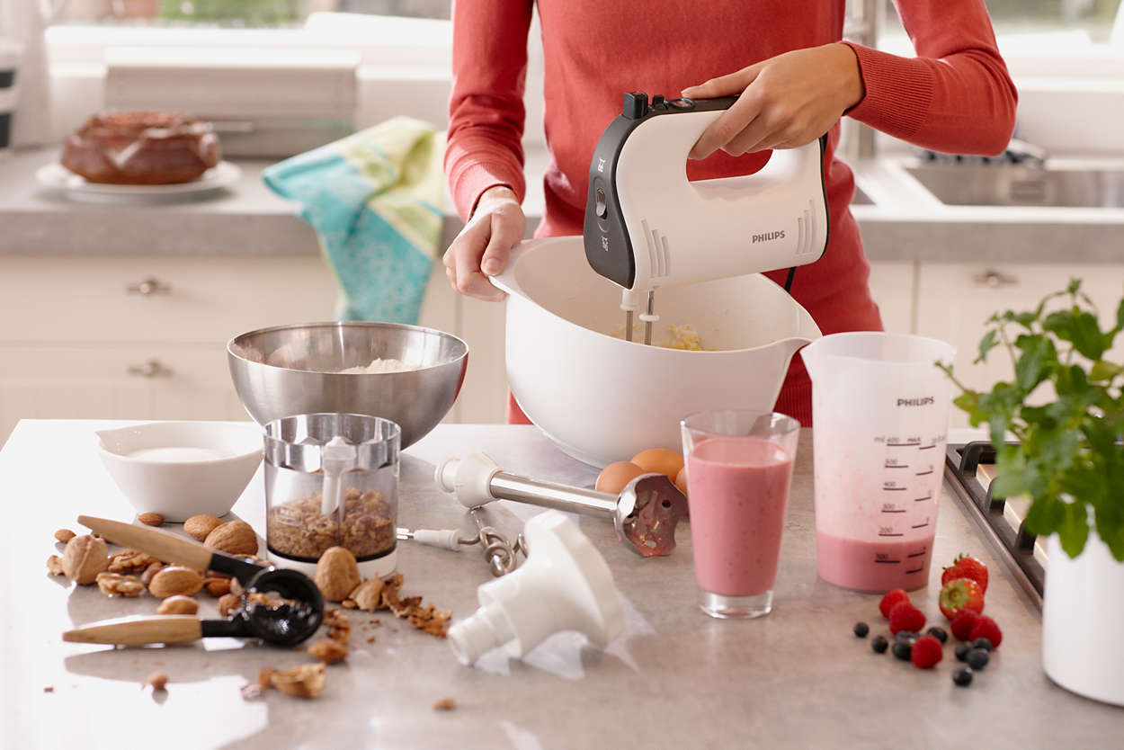 - Maximale Menge an verarbeiteten Produkten. Mixer mit einer Leistung von bis zu 400 W sind Haushaltsgeräte und werden oft zum Aufschlagen von Eiweiß oder zum Kneten von Teig mit einem Gewicht von bis zu 0,5 kg verwendet.Mechanismen, deren Motor eine Leistung von etwa 400-500 W entwickelt, können bereits mit einem Teiggewicht von bis zu 1,5 kg arbeiten. Stationäre Systeme erlauben Ihnen, 4 kg dieser Mischung zu kochen. Es sollte beachtet werden, dass es professionelle Mischer gibt, die in der Produktion verwendet werden. Diese Systeme bewältigen den Teig, der etwa 10-20 kg knetet, perfekt.