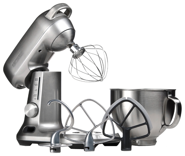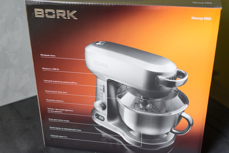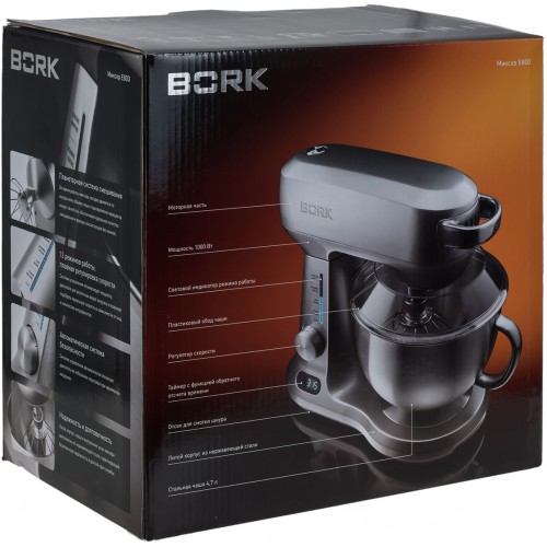 Der Edelstahl-Bork-Planetenmischer ist als Profi-Gerät klassifiziert. Es hat eine hohe Leistung von 1000 Watt und kann mehrere Funktionen gleichzeitig ausführen. Eine Besonderheit ist die doppelte Art der Steuerung: mechanisch und elektronisch.