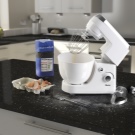 Der Planetenmischer dieses Modells wird von der berühmten amerikanischen Marke Artisan hergestellt. In der Grundausstattung ist er mit einem Schneebesen, einem Knethaken und einem Mischspatel ausgestattet, mit dem Sie Gemüsepüree zubereiten können. Die Schüssel mit einem Griff hat ein Volumen von 4,83 Litern und ist aus Edelstahl gefertigt, nach dem Schlagen ist sie leicht zu bewegen und der Deckel schützt vor Spritzern. In diesem Modell drehen sich die Düsen anstatt der Schüssel in einem Kreis, wodurch Sie weniger Energie verbrauchen.
