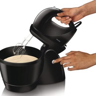 Die erste Option wird als bequemer angesehen, Sie müssen den Mischer nicht auf dem Gewicht halten. So können Sie die Produkte besser schlagen, denn die Hände werden nicht vorzeitig müde. Stationäre Modelle sind leistungsfähiger als manuelle. Topisch für die Herstellung von Saucen auf der Basis von Eiern, Keksen, Marshmallows und Eiscreme. Zu den Nachteilen gehören die hohen Kosten und der Bedarf an Freiraum für die Installation.