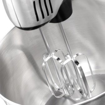 Dieser Mixer hat mehrere Nachteile, die bei der Auswahl berücksichtigt werden müssen. Die Schüssel rotiert nicht unabhängig, aber die Arbeitseinheit selbst hat ein geringes Gewicht, das es ermöglicht, manuell auf die gewünschte Konsistenz zu bringen. Die Blumenkronen erreichen nicht den Boden der Schüssel, was gewisse Unannehmlichkeiten bei der Zubereitung komplexer Rezepte verursacht.