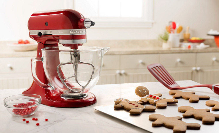 KitchenAid Mischer sind in ihrer Funktionalität bemerkenswert, weil Es gibt viele zusätzliche Düsen, die die Fähigkeiten des Geräts erweitern. Sie können Nudeln hacken, Fleisch mahlen, Saft pressen, Ravioli kochen, Gemüse hacken und vieles mehr.