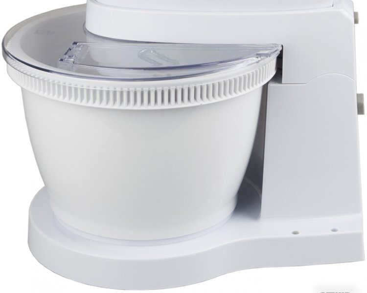 Preiswerter, energiesparender 100-W-Mixer mit sieben Geschwindigkeiten, Düsen zum Schlagen und Knethaken, ebenfalls mit 1,5-l-Schüssel. Der Körper besteht aus Kunststoff, das Gerät selbst ist sehr kompakt und leicht. Es hat keine zusätzlichen Funktionen und ist einfach zu bedienen.Die Budget-Option, wenn Sie nur selten Gebäck backen.