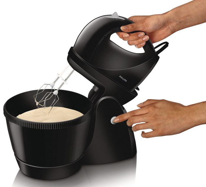 Der Mixer ist zuverlässig und einfach zu verwalten, nicht zu laut. Motorleistung reicht für lange Schläge, und ein spezieller Deckel für die Schüssel schützt vor Spritzern.