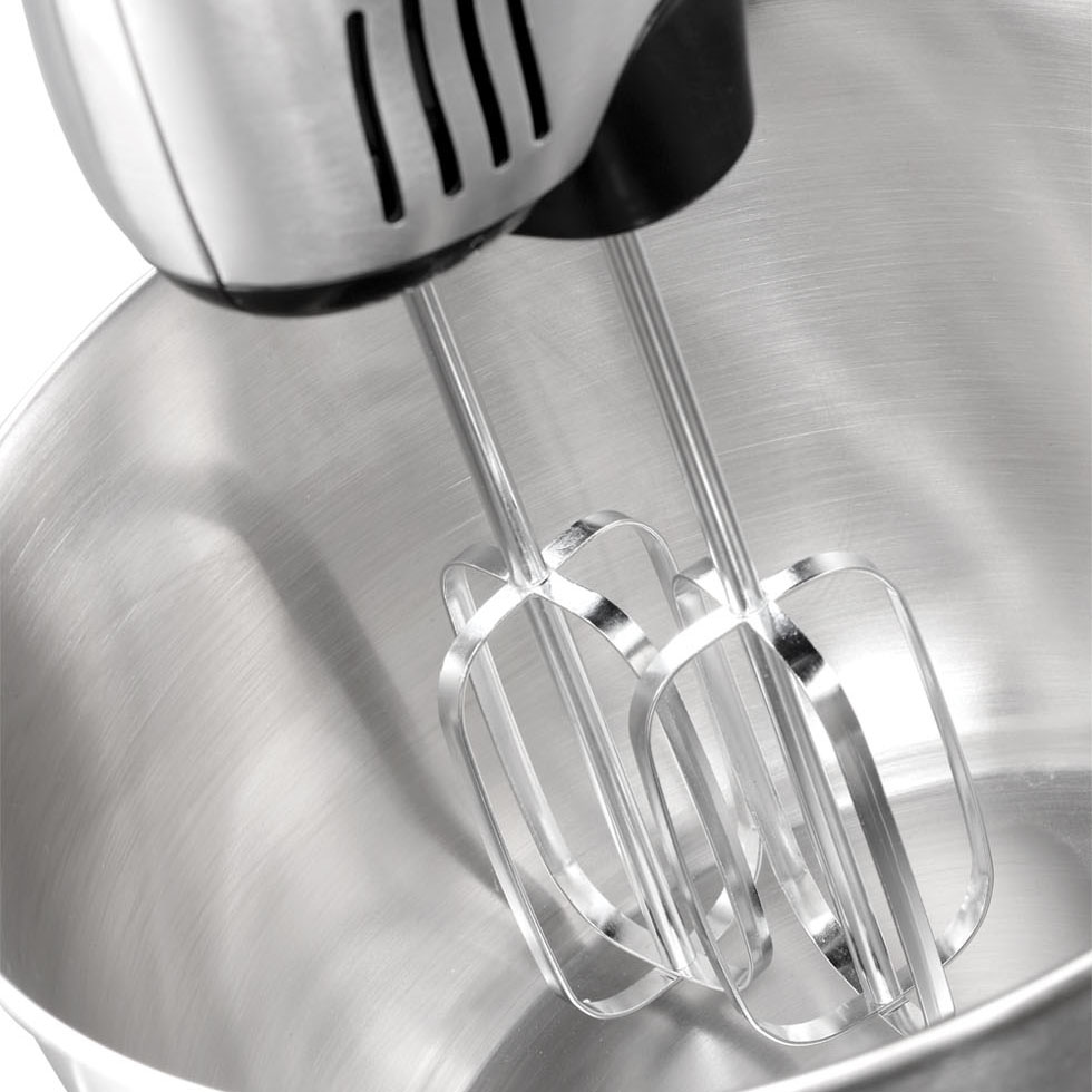 Hochwertiger 1000 W starker Mixer für 10 Geschwindigkeiten und Turbo-Modus, der Sie in Sekundenschnelle schlagen lässt. Die Hauptschale aus Edelstahl von 5 l und die zusätzliche Schüssel auf 3 l ermöglicht die Zubereitung von Speisen in beliebigen Mengen. Ausgestattet mit drei Düsen und hat Funktionen wie schlagen, Teig kneten, Hals und Kartoffelbrei.