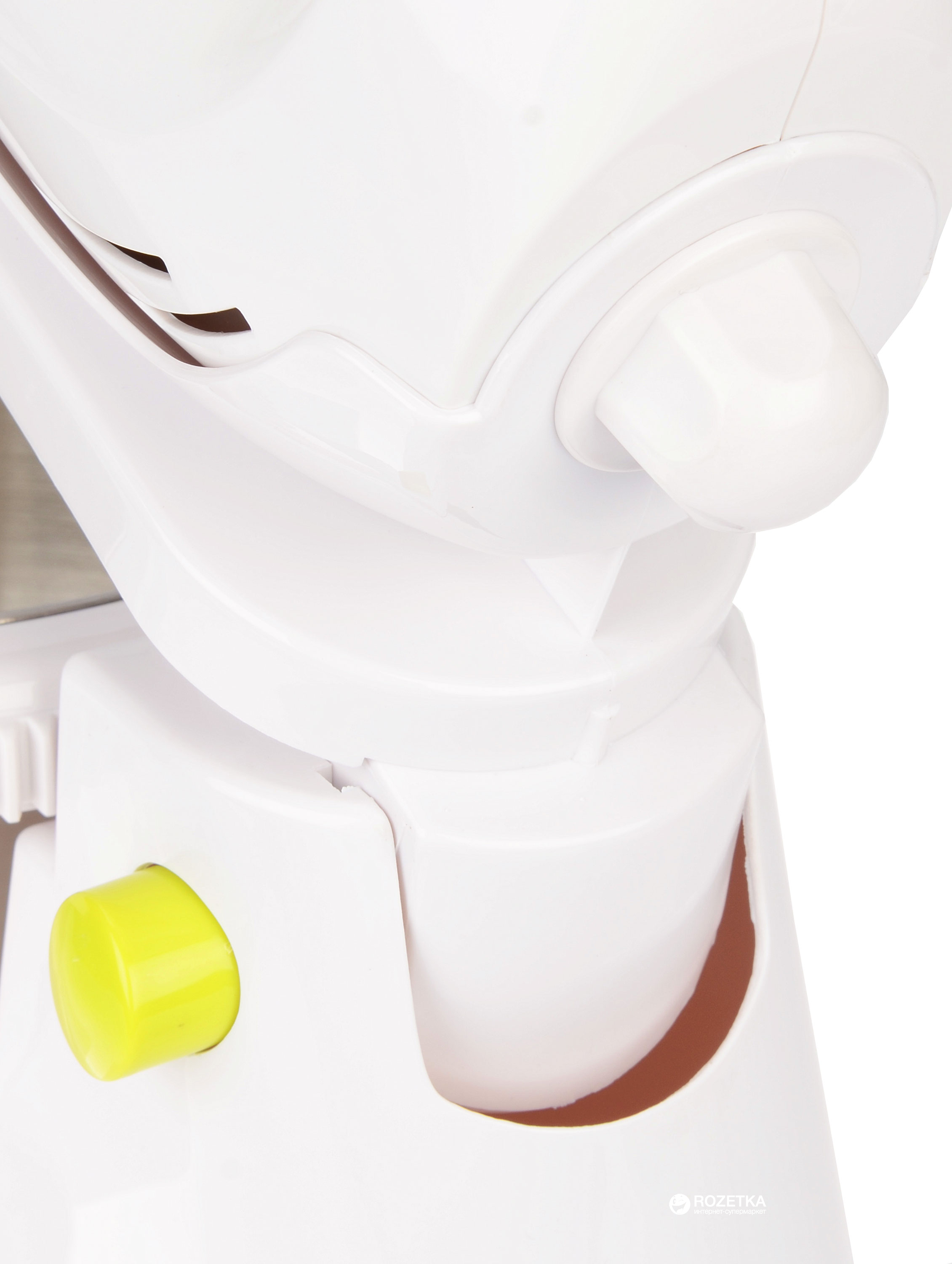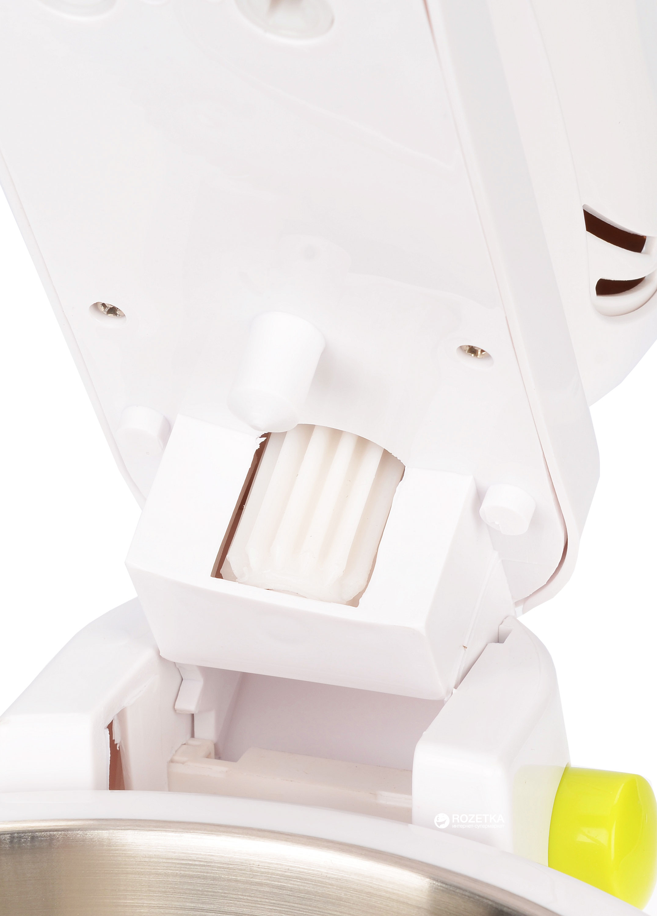 Diese Planeteneinheit bewältigt alle ihr übertragenen komplexen Aufgaben. Einer der Hauptvorteile ist eine große Schüssel von 4,2 Litern. Die Leistung des Mischers beträgt 400 W, was ein ziemlich großer Indikator für Geräte dieses Typs ist. Die in der Verpackung enthaltene Universalmischdüse kann bei der Verarbeitung beliebiger Produkte verwendet werden.