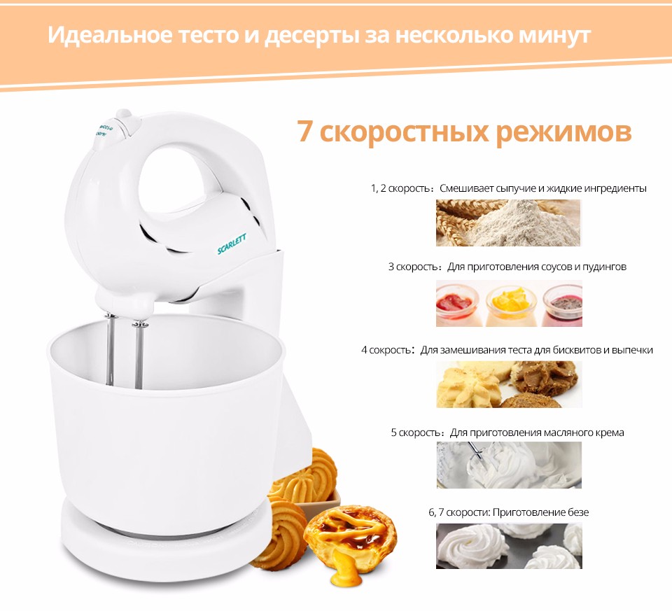 Vergessen Sie nicht das Volumen des Produkts, je mehr von ihnen, desto leistungsfähiger sollte der Mixer sein. Um Ihnen die Auswahl zu erleichtern, haben wir einen kleinen Überblick über die verschiedenen Scarlett-Mischermodelle zusammengestellt.
