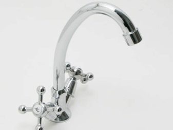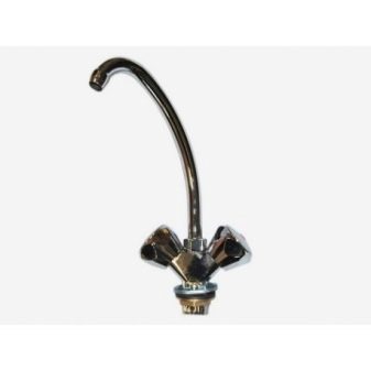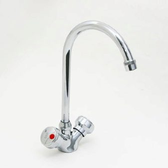 Alles ist einfach und es gibt nur zwei Arten von Ausgüssen, die sich in Höhe, Höhe und Tiefe unterscheiden, und sie hängen hauptsächlich von der Spüle ab. Das heißt, je breiter und tiefer die Spüle ist, desto höher sollte der Kran sein und umgekehrt, für einen flachen kleinen Tank ist es notwendig, einen kurzen Kran zu erwerben.