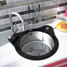 Ein rundes Waschbecken aus Edelstahl passt perfekt in modernes Design und klassischen Innenraum. Dank der weichen Linien wird es auch in der bizarrsten Küche noch mehr Komfort bieten.