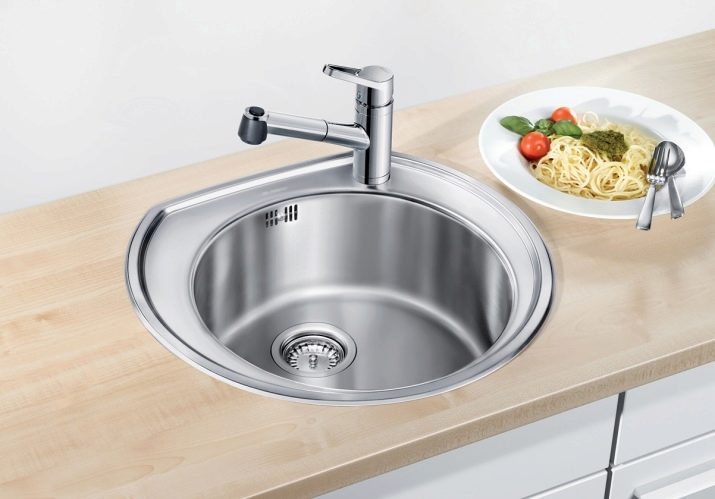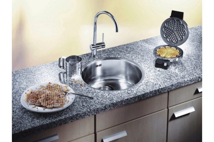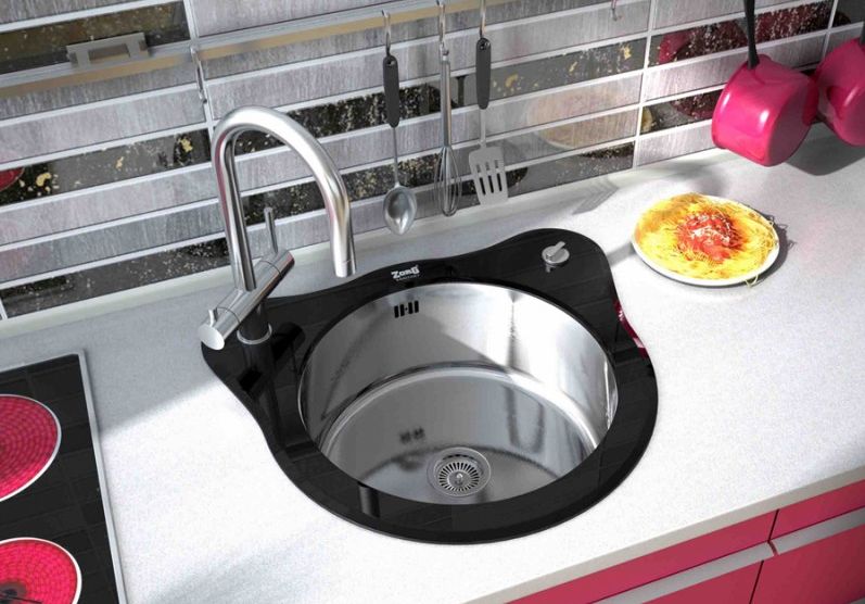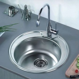 Die am genauesten definierten Kriterien entsprechen einer runden Edelstahlspüle. Sie erschien vor kurzem auf dem Markt, ist aber sehr beliebt bei Hausfrauen, vor quadratischen und rechteckigen Pendants.