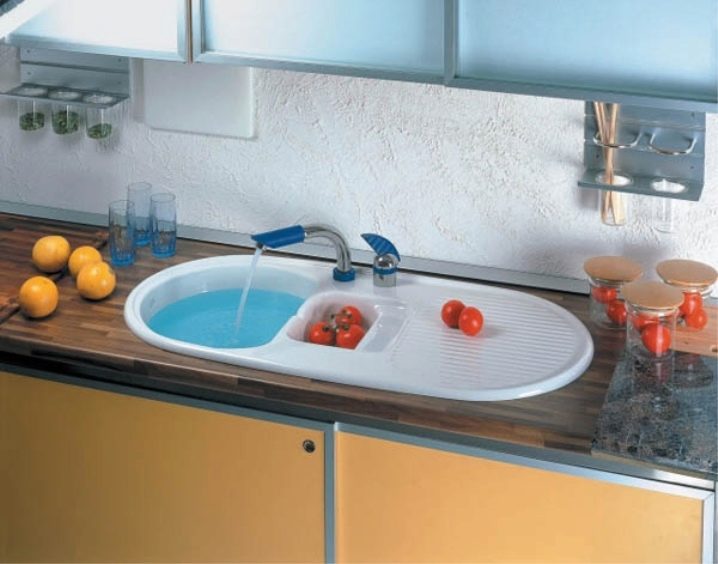 Spülen für die Küche können in der traditionellen Form existieren: rund, quadratisch, rechteckig oder oval, sowie unterschiedliche Aussehen, gute, moderne Produktionstechnologien und Rohstoffe ermöglichen es Ihnen, die kühnsten Ideen von Designern neu zu erstellen.