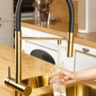 Wenn die Gastgeberin schnell Wasser benutzen muss, ist es viel einfacher für sie, den speziellen Hebel am Mixer mit einer Hand zu steuern.
