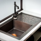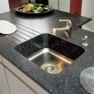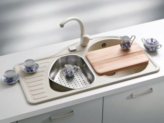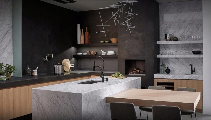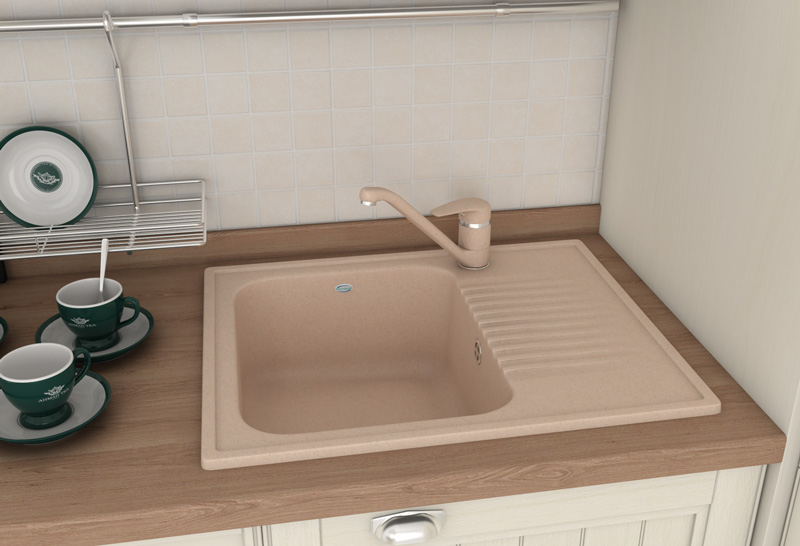 Die Hauptvorteile eines Steinmischers, können eine lange Nutzungsdauer, eine schöne matte Oberfläche, in Harmonie mit dem Rest der Küche gesetzt werden, und eine Vielzahl von Tonlösungen. Nicht jeder kann es sich leisten, einen Satz Naturstein zu kaufen, aber das ist nicht notwendig. Künstliche Verbindungen, die auf dem russischen Markt zu vernünftigen Preisen verkauft werden, kommen zur Rettung.