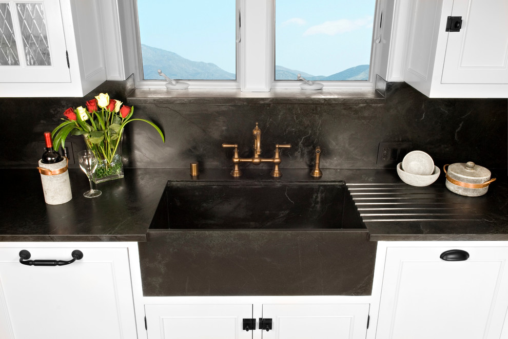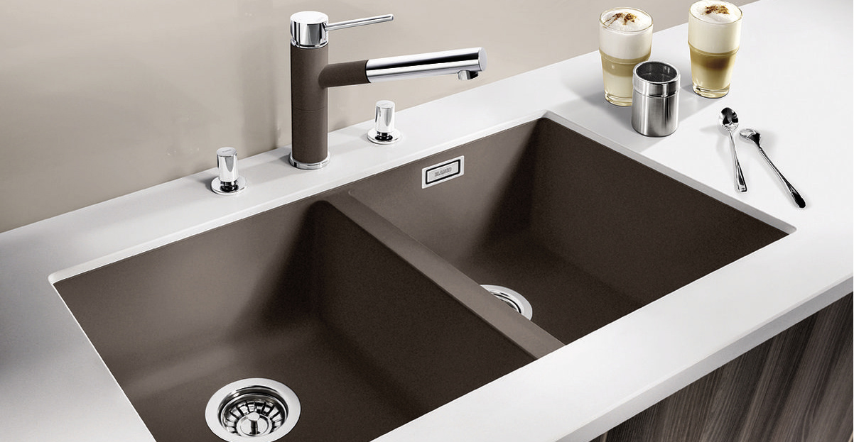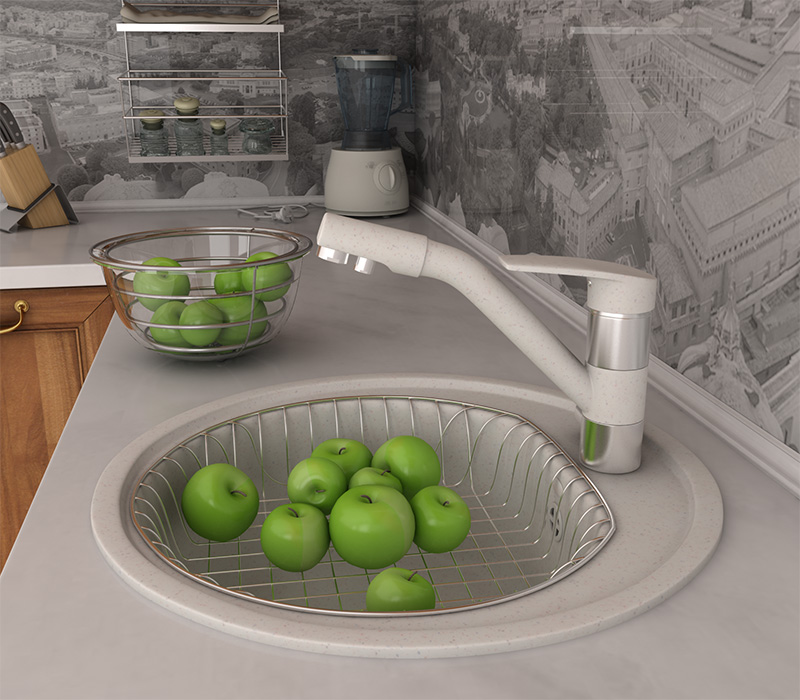 Mischer aus Stein behalten die Farbe perfekt, verblassen nicht, reißen nicht und sind resistent gegen hohe Temperaturen sowie extreme Temperaturen. Die Farbpalette ist ziemlich stabil und in Kontakt mit Lebensmittelfarben.Brauner, schwarzer, blauer und weißer Kunststein gehören zu den begehrtesten Farben und eignen sich für jedes Küchenset.