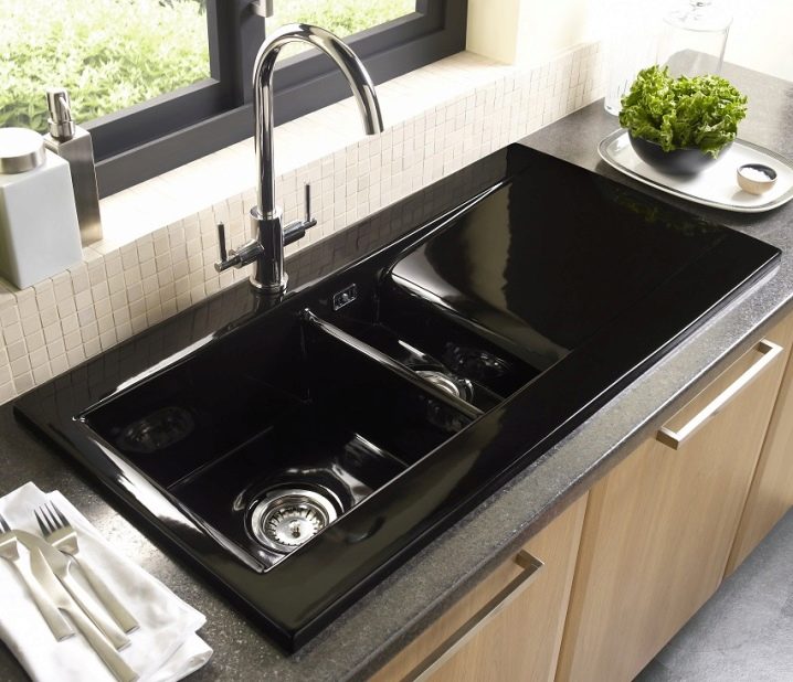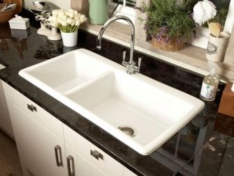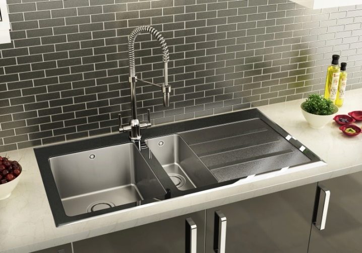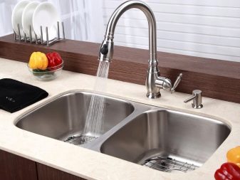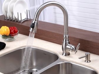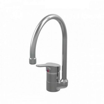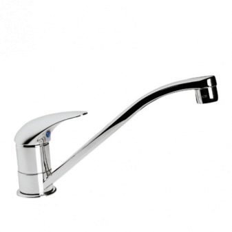 Installation - Desktop, der direkt auf der Oberfläche der Spüle oder Arbeitsplatte installiert wird. Die Küchenarmatur mit einem Hebel an der Seite des Mischergehäuses gilt als am bequemsten zu verwenden.