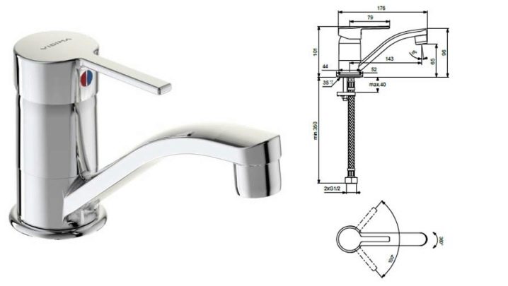 Die große Länge des Wasserhahns und sein großer Drehwinkel ermöglichen die Verwendung eines Wasserhahns für das Badezimmer und die Spüle. Im Zweiventil-Modell des Retro-Arbeitssektors - 180 Grad, das die Standardfähigkeiten von Economy-Mischern anderer Hersteller übertrifft. Ihre Rotationsgrenze liegt zwischen 120 und 160 Grad. Zu den Schwächen dieses Modells gehört ein schwacher Divertor: Der Mechanismus zur Umleitung des Wasserflusses ist instabil.