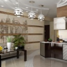- Das Einfärben im geometrischen Stil (Zelle, Diamanten, Kreise) erzeugt eine Art von Illusion, aufgrund derer der Raum immens erscheint.