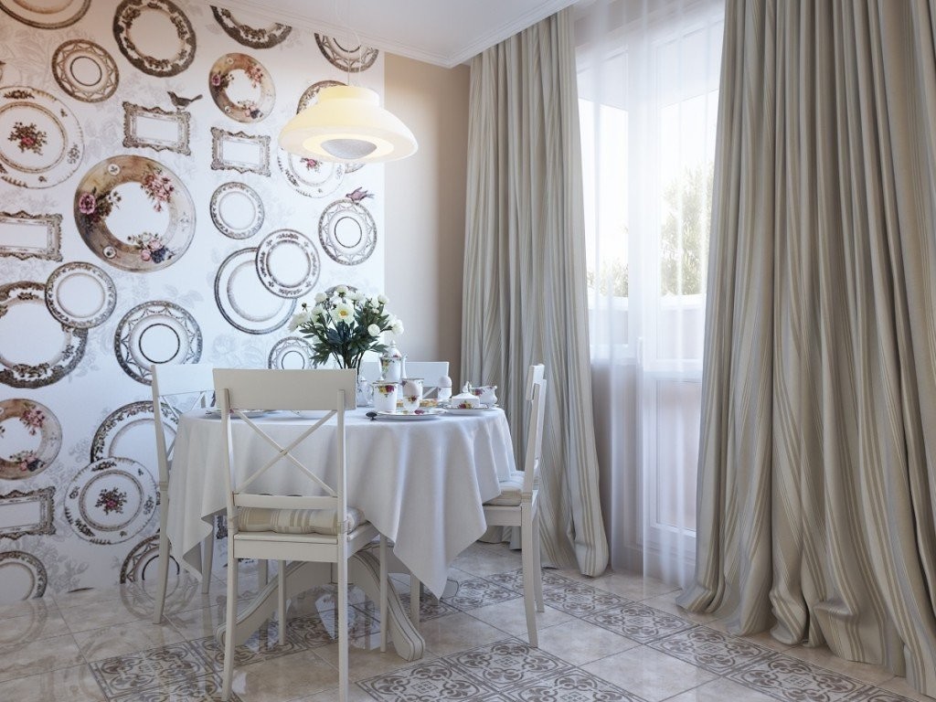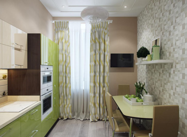 Wie bei den Farben sollte die Tapete in der Küche mäßig hell sein. Ihre Hauptaufgabe ist es, dem Auge zu gefallen und gute Laune zu schaffen. Die am meisten empfohlenen Farben: Beige, Orange, Gelb, Hellgrün.