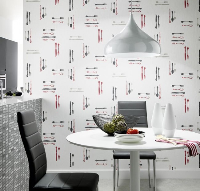 - Beim häufigen Kochen an den Wänden färbt sich eine Vielzahl von Produkten. In der Kochzone ist eine regelmäßige Nassreinigung unter Verwendung von Reinigungsmitteln erforderlich, da Fettflecken mit gewöhnlichem Wasser schwer zu entfernen sind. Auch in der Küche kann sich eine erhöhte Luftfeuchtigkeit und eine ständige Wechselwirkung mit Flüssigdämpfen nachteilig auf das Erscheinungsbild der Tapete auswirken. Daher empfiehlt es sich, feuchtigkeitsfeste und abwaschbare Tapeten für die Küche zu wählen.