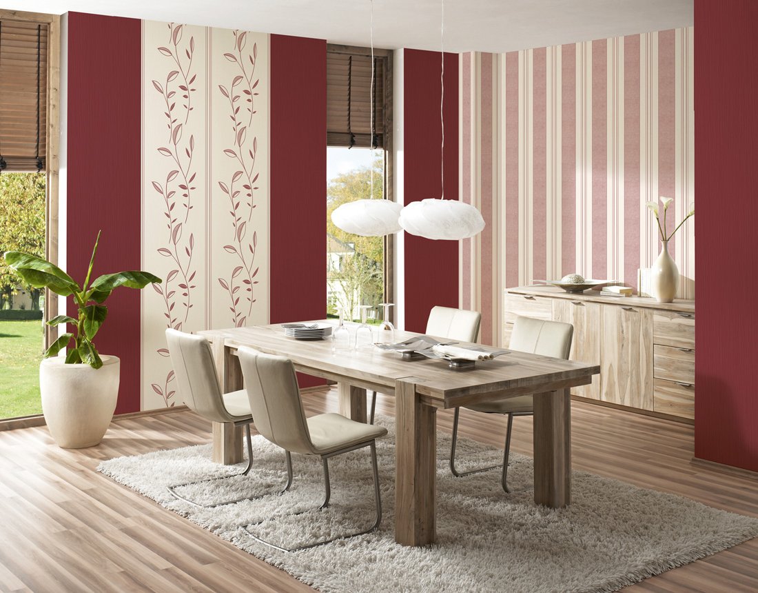 Am besten denken Sie über die richtige Kombination beim Kauf mit Hilfe eines Designers oder Verkäufers / Käufers nach. Oft verkaufen die Baumärkte ganze Tapetenkollektionen, die sich in Muster und Textur unterscheiden, perfekt miteinander kombiniert.