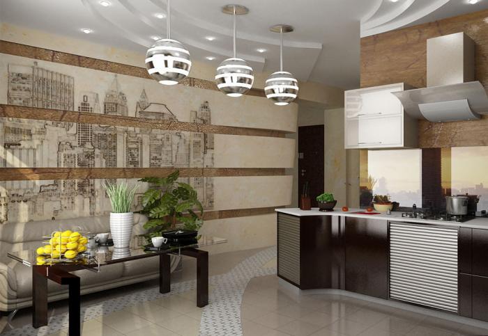 Sicherlich hat jeder, der jemals angefangen hat zu reparieren, nicht nur die Ideen des Küchendesigns durchgesehen, sowohl in Zeitschriften als auch im Internet. Dekoroptionen mit Hilfe von Wandgemälden sind viele. Besonders interessante Möglichkeiten, verschiedene Tapeten zu kombinieren. Viele Leute denken, dass nur Designer zu solchen Dingen fähig sind, aber es ist nicht sehr schwierig, sie unter realen Bedingungen zu implementieren.