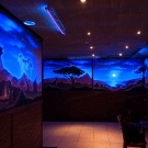 LED-Wäsche mit Wasser, aber ohne Reinigungsmittel, Bürsten und extrem vorsichtig. Immerhin sind die Kontakte leicht zu beschädigen, und eine Reparatur der LED-Tapete ist unmöglich. Daher ist es besser, Kindern und Haustieren solche Fototapeten nicht zu erlauben.