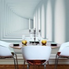 3D-Hintergrundbilder werden mit einer anderen Technologie aus einem Lenticor-Kunststoff hergestellt. Das Muster wird durch kleine zylindrische Kunststofflinsen geformt, die parallel sind. Die Zeichnungen in diesen Fototapeten sind wie zweischichtig, mit einem leichten Versatz zueinander. Als Ergebnis wird das Bild wie aus der Wand hervorquellend, ein neuer Raum öffnend. Manchmal wird ein spezieller Kunststoff verwendet, um ein volumetrisches Ergebnis zu erzielen.In diesem Fall bekommt das Bild wirklich die Lautstärke.