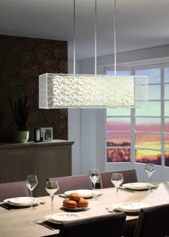 Dies ist ein Hintergrundbild basierend auf Stoff. Aber diese Tapete kann für einen geräumigen Speisesaal verwendet werden, in dem Kochen nicht der Hauptzweck des Raumes ist. Weil diese Tapeten Gerüche absorbieren und keine Feuchtigkeit mögen.