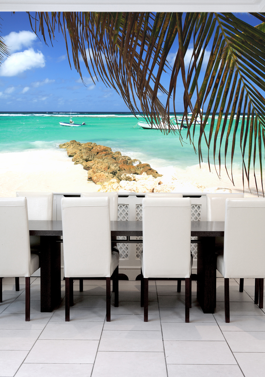 Genießen Sie Ihren Morgenkaffee in einem blühenden Garten oder schauen Sie sich die tosende Meeresbrandung an. Ein Traum? Ihre Realität wird 3D-Tapeten in der Küche machen.
