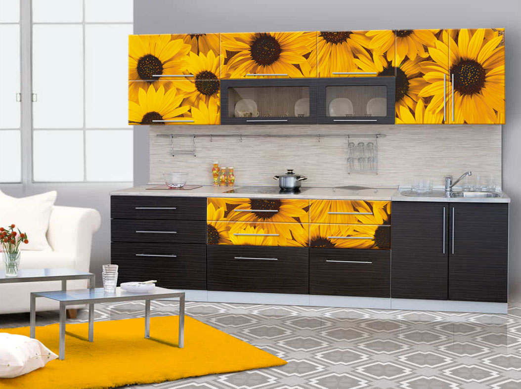 Die Küche, die im Gegenteil von der Sonne geblendet wird und durch das Fenster sirrt, kann mit Bildern von dunklen und gesättigten Tönen abgedunkelt werden.Blumen, Wasserfälle oder Waldwege.