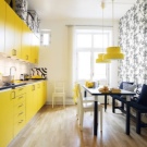 Umweltfreundliche und sichere Tapete von Experten für die Küche empfohlen. Sie sehen solide aus und haben ein langes Leben. Für Vinyl-Tapeten, die mindestens die Hälfte der Palette der großen Geschäfte ausmachen, erfand der Begriff - Anti-Vandalismus, also sind sie stark gegen äußere Einflüsse.