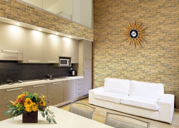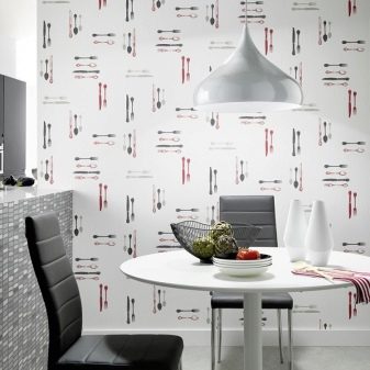 Der einzige Nachteil von Vinyltapeten auf Vliesstoffen kann ihr relativ hoher Preis sein. Aber im Gegensatz zu diesem Umstand haben Sie die Möglichkeit, das schöne Interieur der Küche für mindestens zehn Jahre zu genießen. Solide Tapete Luft und schalldicht, waschen und reinigen mit dem Zusatz von Spezialwerkzeugen. Im Laufe der Jahre, die sie dienen werden, sieht die Leinwand fast unverändert aus, die Farbe und das Muster bleiben gleich.