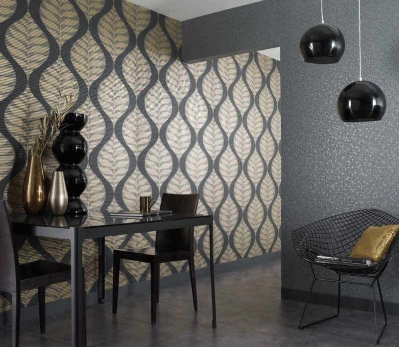Siebdrucktapeten sind auch Heißprägung. Sie unterscheiden sich in einer separaten Produktlinie, da es in der Fertigungstechnik ein Detail gibt - Gewebefäden werden in die fertige Vinylbeschichtung eingestreut.Die Fasern verleihen der gesamten Leinwand eine Ähnlichkeit mit Seidenstoff. Trotz des ungewöhnlichen und eleganten Aussehens sind Siebdrucktapeten leicht zu reinigen und zu reinigen, zuverlässig und beständig wie alle anderen in dieser Serie.