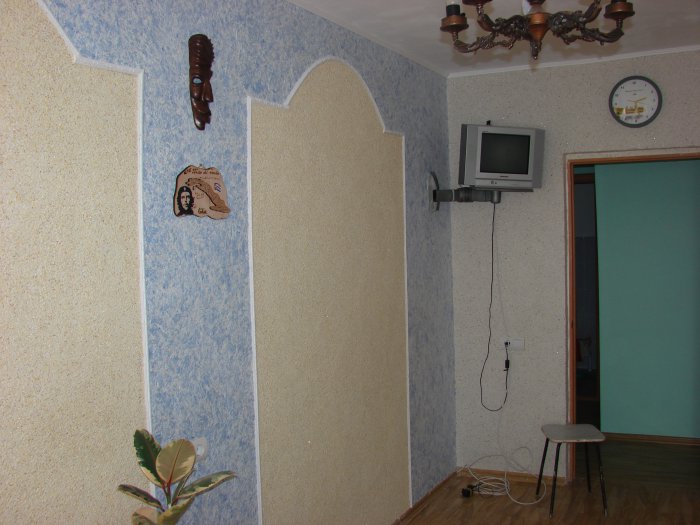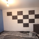 - Wir entfernen die alte Beschichtung und reinigen die Wand. Verputzen großer Lücken.