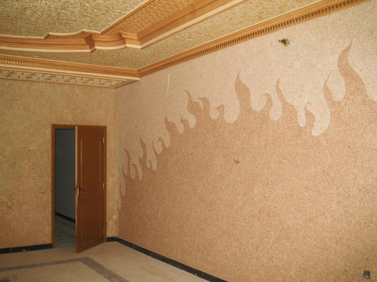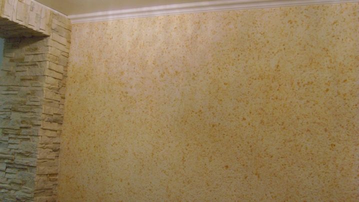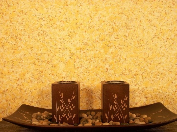 Flüssige Tapete ähnlich wie Textilgegenstücke oder Dekorputz. Starten Sie eine Reparatur, achten Sie auf dieses Produkt. Diese Tapeten haben keine Angst vor längerer Exposition gegenüber erhöhten Temperaturen, sie ist so wichtig für den Arbeitsbereich. Die Textur der Tapete gibt eine Haltbarkeitsgarantie, sie sind nicht anfällig für mechanische Störungen.