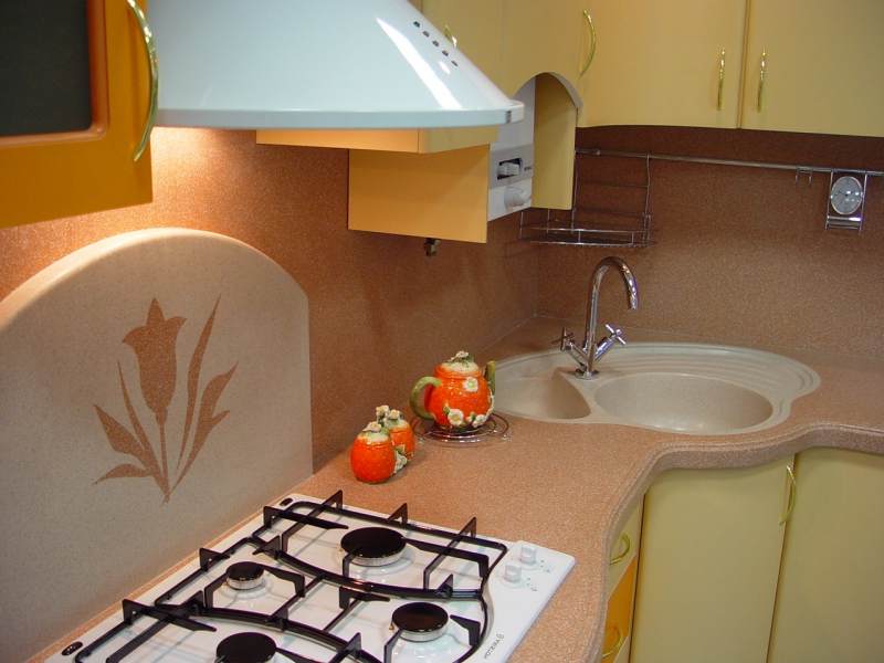 Ob sich flüssige Tapeten für die Küche eignen, die Meinungen sind sehr unterschiedlich. Wie oben erwähnt, können Wände mit einer solchen Beschichtung nicht gewaschen werden. Und die Verschmutzung in der Küche taucht jeden Tag auf.Aber es gibt eine Alternative. Flüssigtapete kann auf die gesamte Oberfläche aufgetragen werden, außer der Arbeit.