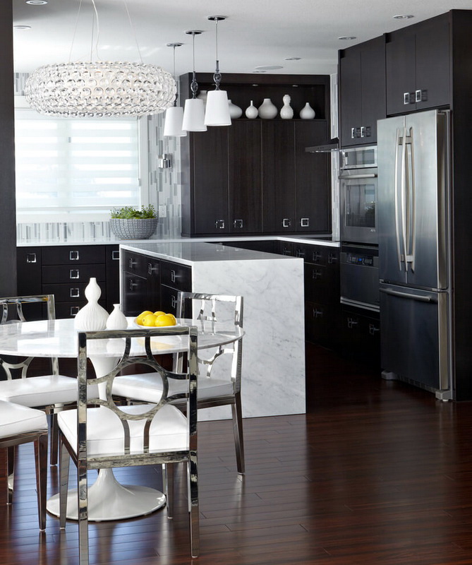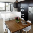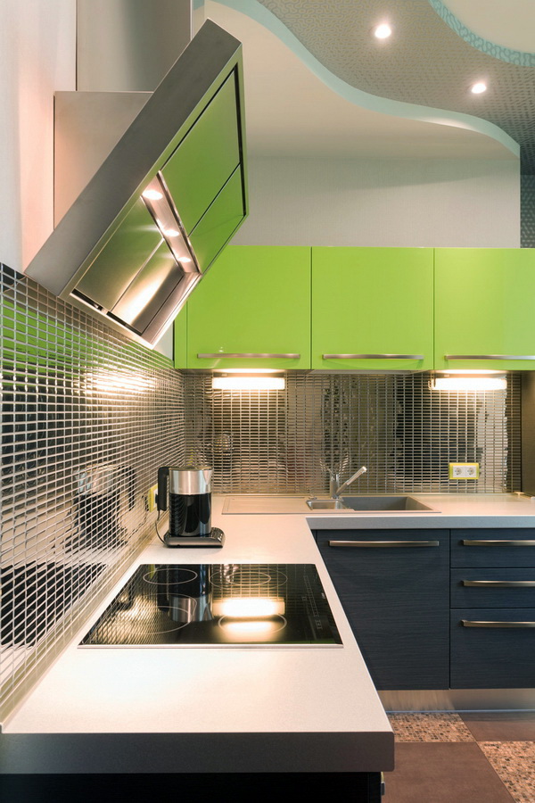 Eine sehr beliebte Lösung im Design heute ist die Küche in modernem Stil. Moderner Stil ist vor allem viel Farbe und Licht. Die Kombination von kontrastreichen, satten Farben, glänzenden Oberflächen und originellsten Lampenmodellen - all das ist in einer modernen Küche erlaubt.