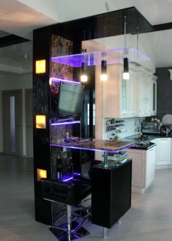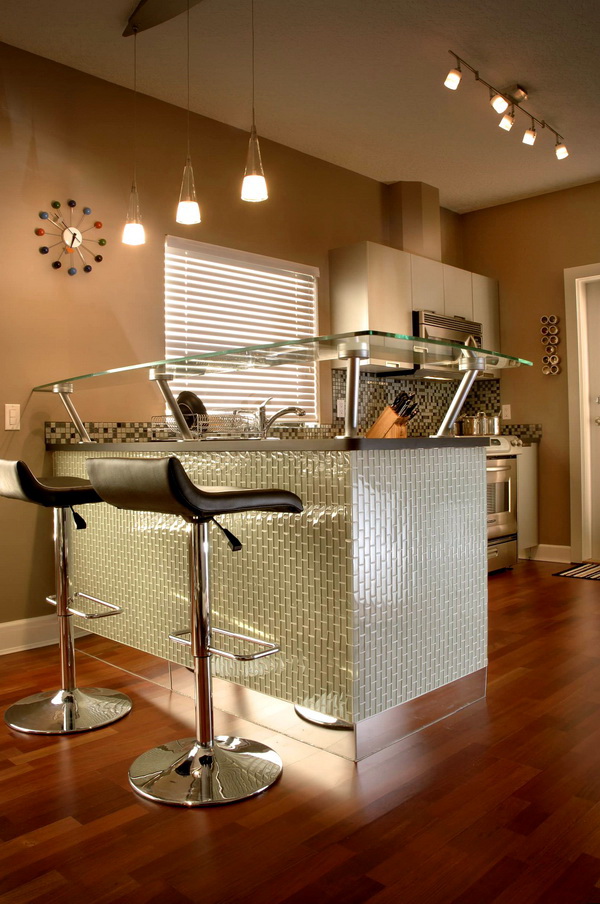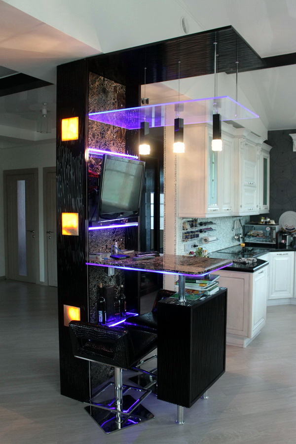 - In letzter Zeit sind Bar-Theken in der Küche populär geworden. Normalerweise hat eine gute Theke eine eingebaute Beleuchtung, aber was ist, wenn es nicht so ist? Es ist sehr einfach: Sie müssen die Beleuchtung über der Bar selbst organisieren. Der Bartresen ist ein ziemlich helles Element des Designs einer modernen Küche, so dass er keine hellen dekorativen Beleuchtungselemente benötigt.Zur Beleuchtung der Bar Thekenscheinwerfer sind perfekt.