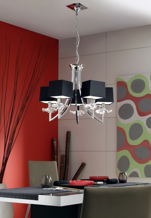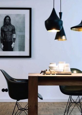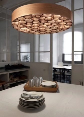- Wenn Sie einen Kronleuchter oder eine Lampe für die Küche wählen, sollten Sie sich nicht für Produkte mit einer großen Anzahl kleiner Gegenstände oder Textilien entscheiden. In der Küche, wo viel und oft gekocht wird, oft hohe Luftfeuchtigkeit. Aus diesem Grund ist der Kronleuchter viel häufiger und stark verschmutzt.