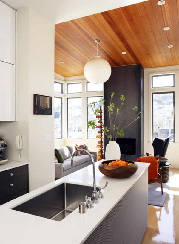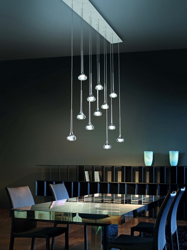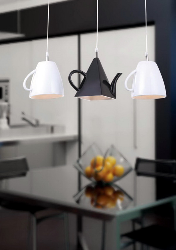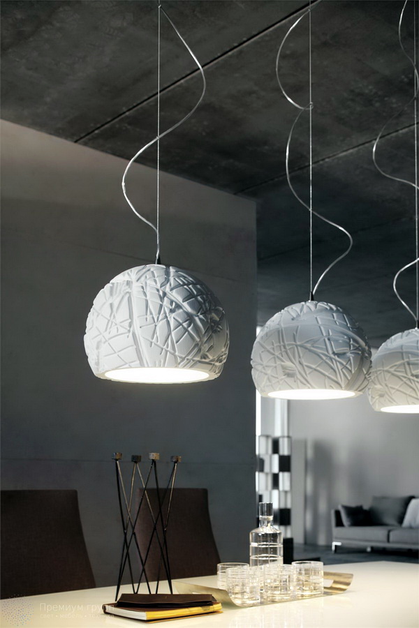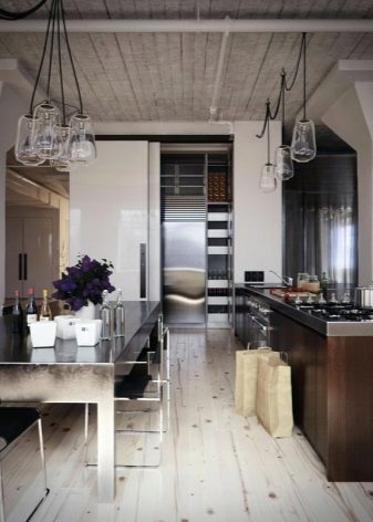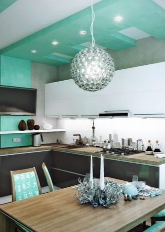 - Decken-Küchenlampen erhalten eine zunehmende Vielfalt an Designformen. Heute sind Hängeleuchten mit langen Schnüren sehr gefragt. Solche Lampen, die von der Decke herabhängen, können praktisch den Tisch erreichen. Moderne Hängeleuchten sind oft mit einer federnden Schnur mit Memory-Effekt ausgestattet, deren Länge und Richtung nach Geschmack gesteuert und verändert werden kann.