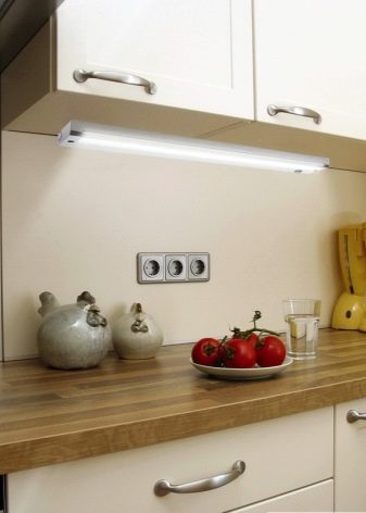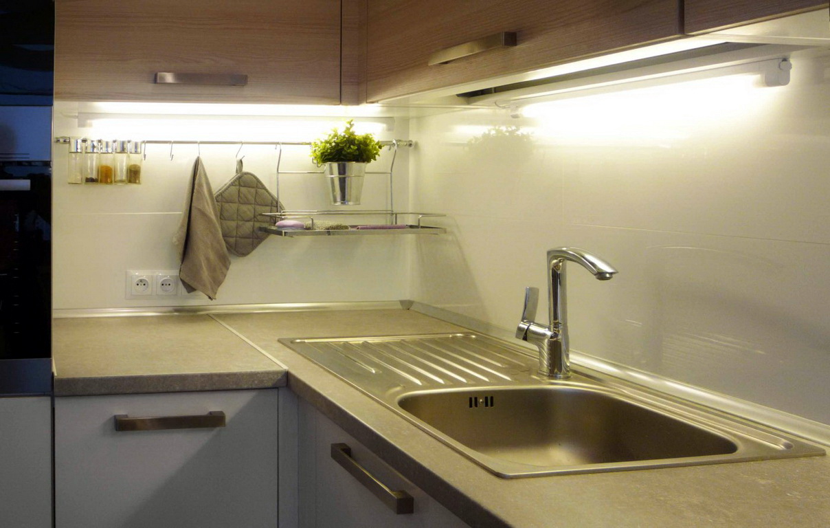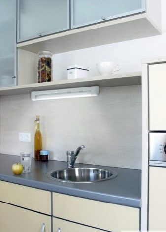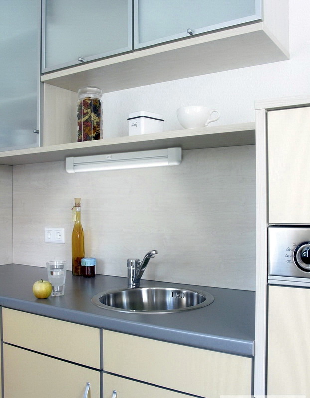 - Glühbirne Ilyich lange resigniert. Heute in der Küche verwenden Leuchtstofflampen, Halogen-, Dioden-, LED-und Nano-Lampen.Sie helfen, den Energieverbrauch deutlich zu reduzieren. Viele von ihnen emittieren ziemlich helles Licht mit kleinen Abmessungen der Glühbirne selbst, wie zum Beispiel bei LED.