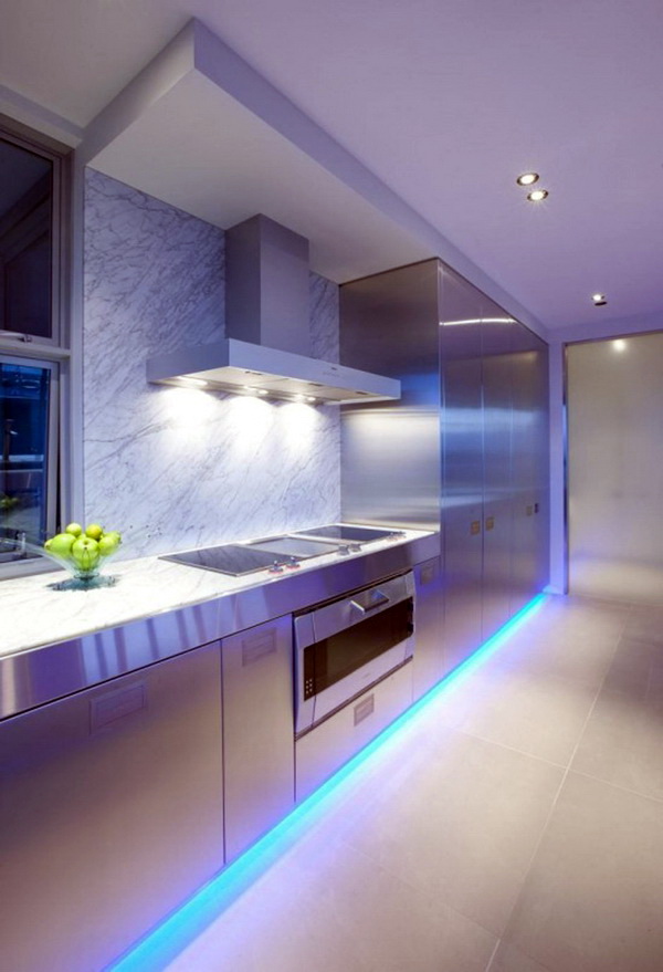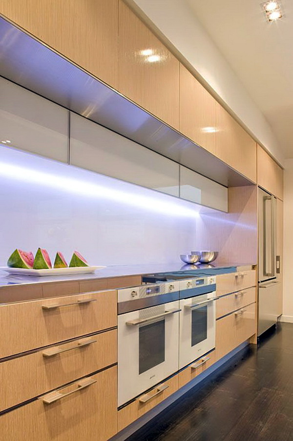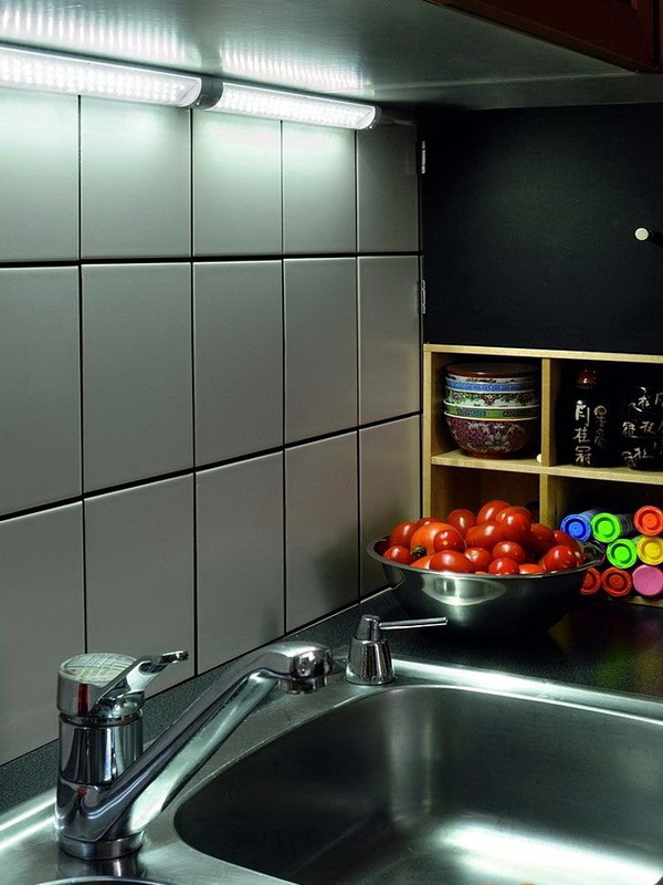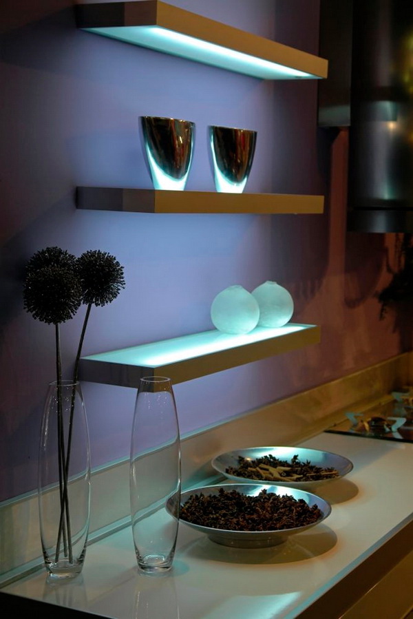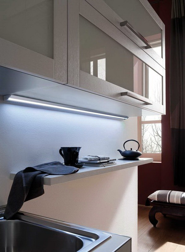 - Möbel. Eine solche Beleuchtung kann entweder zunächst in den Boden der Klappkästen eingebaut oder unabhängig davon eingebaut werden. Es gibt auch Dioden-, Linear- oder Schienenbeleuchtungssysteme, die sicher auf der Rückseite der Schubladen mit Klebeband für Möbel oder kleine Schrauben angebracht werden können.Eine solche Beleuchtung kann die Stromversorgung versorgen, aber es gibt auch drahtlose Optionen für Batterien.