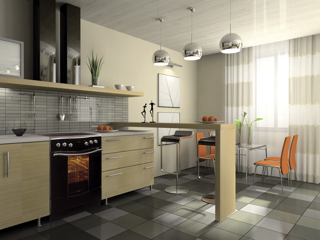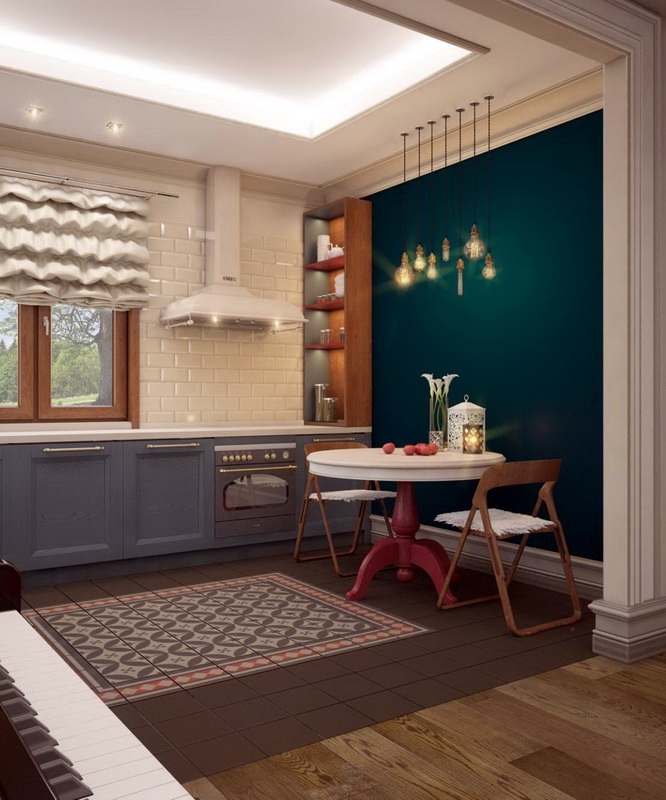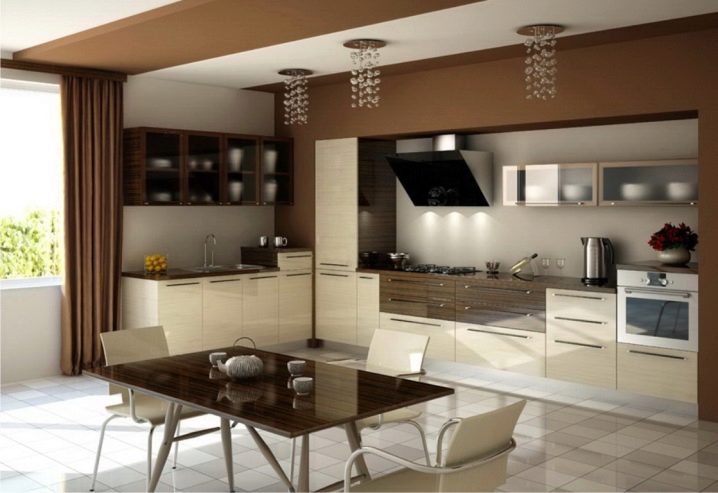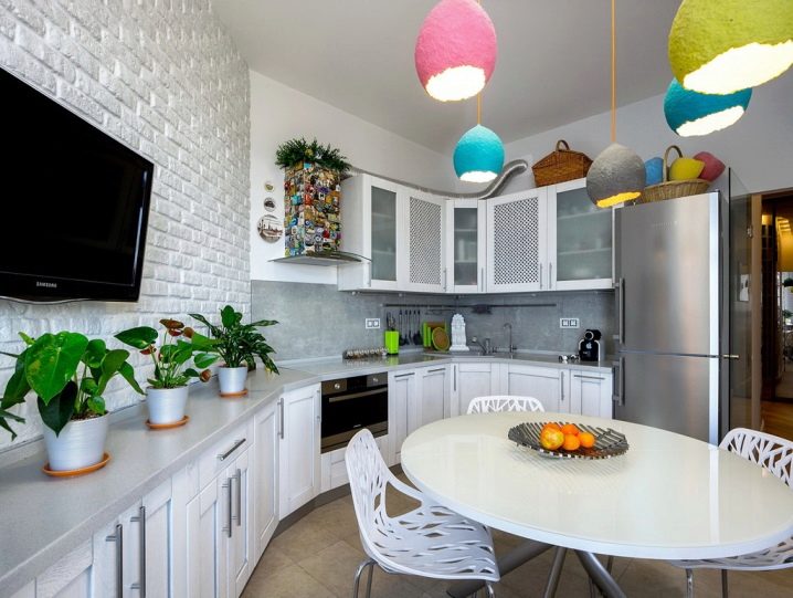 Die Tradition, einen Kronleuchter in der Mitte des Raumes zu hängen, ist mit dem Zusammenbruch der Sowjetunion, der Krise der 90er Jahre und der Ära des totalen Defizits einhergegangen. Heute in den Regalen des Baus von Supermärkten ist es möglich, Beleuchtungselemente für jeden Zweck und Bedarf zu finden. Je nach Küchenstil kann die Beleuchtung in mehreren Bereichen angeordnet sein: